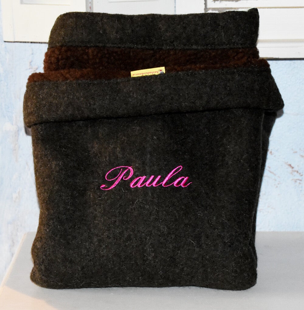 Diesel Dackelsack wird aus hochwertigem Walkloden gefertigt und mit weichem und angenehmen Lammfellimitat gefüttert. Ideal für draußen oder auch im Auto. Aus 100% Schurwolle